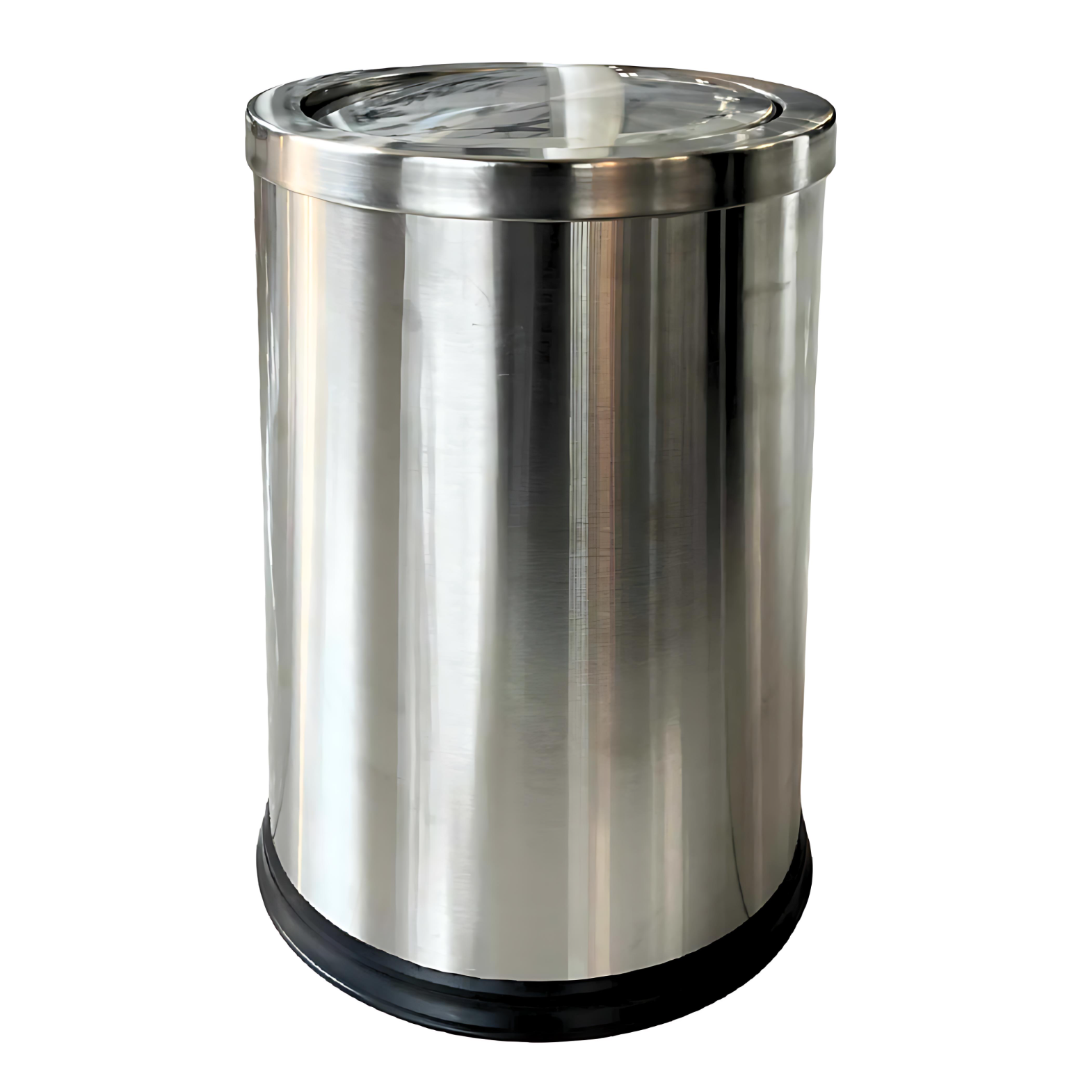 With swing lid and rubber ring at the bottom Material: 201 stainless brushed steel Material thickness: 0.4mm Size: Ø200×H300mm